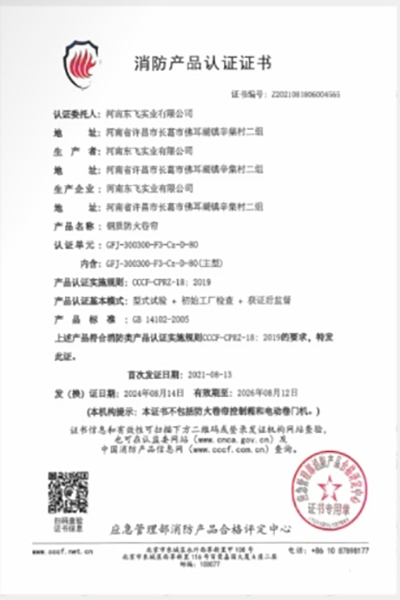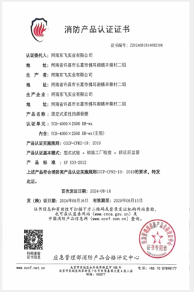 我司生產(chǎn)的產(chǎn)品均通過(guò)了應(yīng)急管理部消防產(chǎn)品合格評(píng)定中心的檢驗(yàn),并獲得了消防產(chǎn)品認(rèn)證證書(shū)