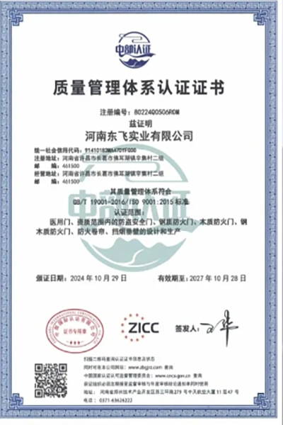 河南東飛實(shí)業(yè)有限公司(東飛利防火門(mén)窗)是一家集研發(fā)、生產(chǎn)、銷(xiāo)售、安裝于一體的防火門(mén)窗、消防產(chǎn)品專(zhuān)業(yè)化企業(yè),主要產(chǎn)品有各種鋼質(zhì)防火門(mén)、鋼木質(zhì)防火門(mén)、木質(zhì)防火門(mén)、學(xué)校門(mén)、防盜門(mén)、防火卷簾、防火窗等。公司所經(jīng)營(yíng)的消防產(chǎn)品均通過(guò)了應(yīng)急管理部消防產(chǎn)品合格評(píng)定中心的檢驗(yàn),獲得了消防產(chǎn)品認(rèn)證證書(shū)。憑借嚴(yán)格的生產(chǎn)管理體系、質(zhì)量體系、售后服務(wù)體系走在市場(chǎng)前列。以“誠(chéng)信為根、質(zhì)量為本、服務(wù)至上”的服務(wù)宗旨,培養(yǎng)了一批有責(zé)任有擔(dān)當(dāng)?shù)纳a(chǎn)、管理、營(yíng)銷(xiāo)人才,堅(jiān)持以務(wù)實(shí)態(tài)度、創(chuàng)新精神、厚德品質(zhì)為客戶(hù)提供好服務(wù)。公司產(chǎn)品在選材、工藝、技術(shù)、質(zhì)量等方面具有優(yōu)勢(shì)。首先我們?cè)诋a(chǎn)品設(shè)計(jì)上敢為人先,注重企業(yè)自主能力建設(shè)和品牌建設(shè),生產(chǎn)的防火門(mén)、防火窗、防火卷簾等系列產(chǎn)品以高質(zhì)量的的材料、創(chuàng)新的工藝和技術(shù)、完善的售后服務(wù)受到了廣大客戶(hù)的贊譽(yù)。
